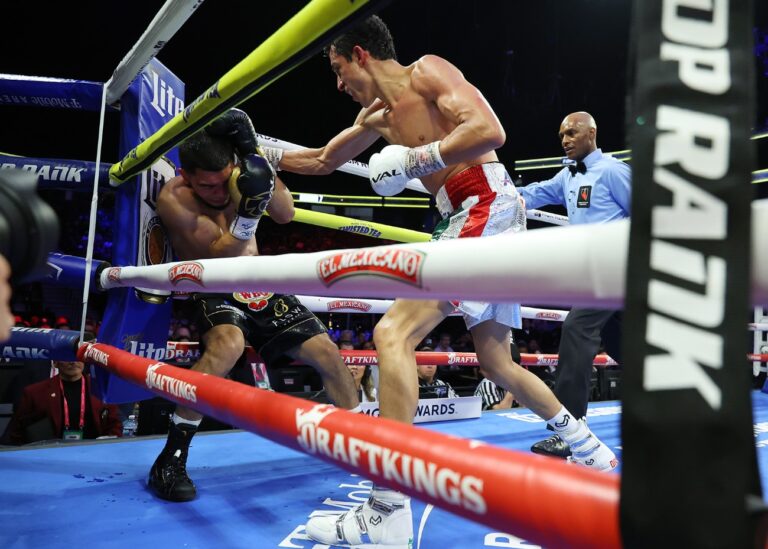 Wbo Featherweight Champions Rafael Espinoza (27-0, 23, 23, Edward Vazquez (17-3, 4 Kos) had a shorter challenge (17-3, 4 kos) in the seventh round, Sunday night, T-Mobile Arena in Las Vegas. (Credit: Mikey Williams / Top Rank) 6’1 “spinocus was…