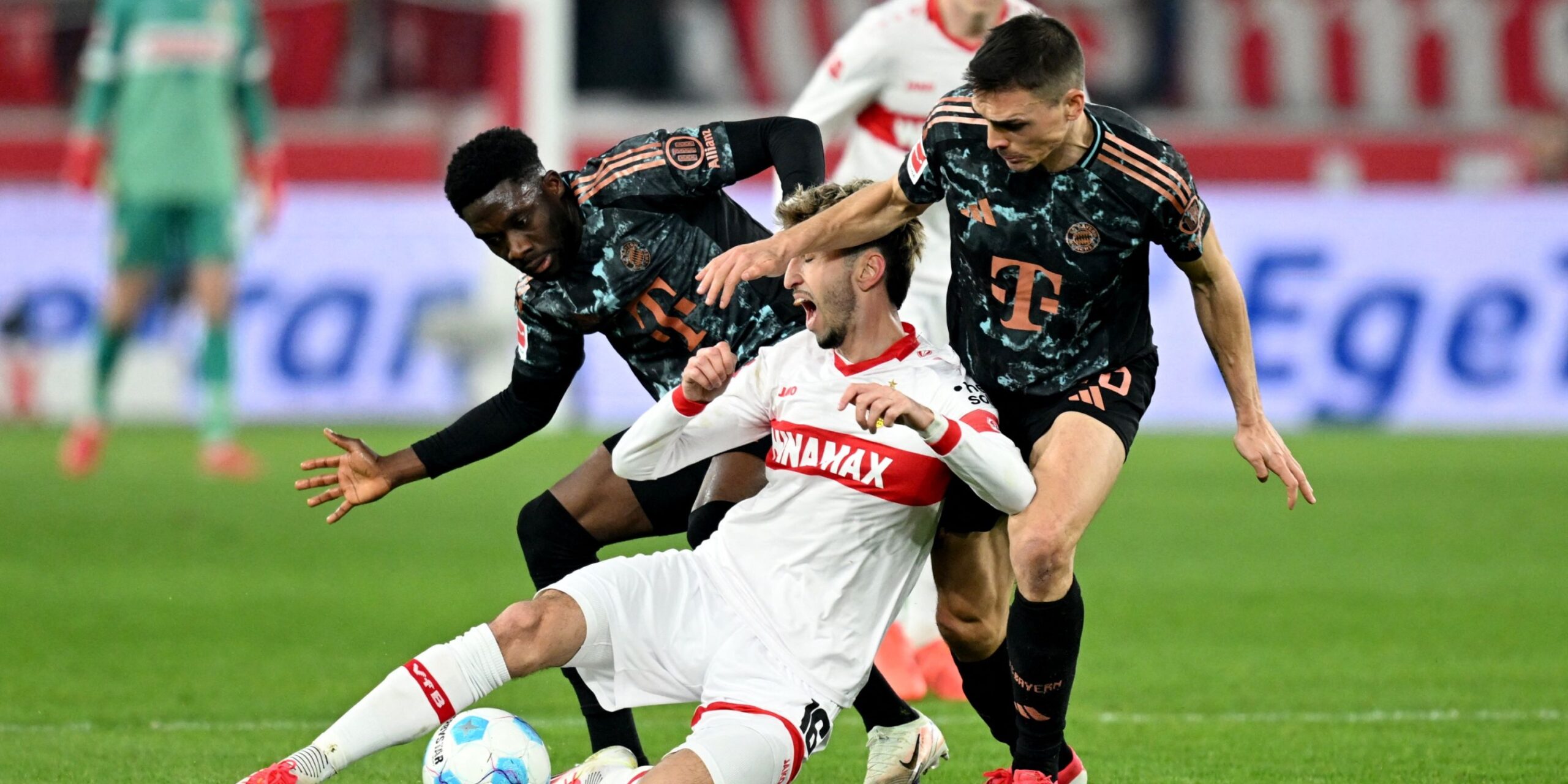 Bayern Munich's Joao Palhinha Looks Dejected As He Walks Off After Receiving A Red Card