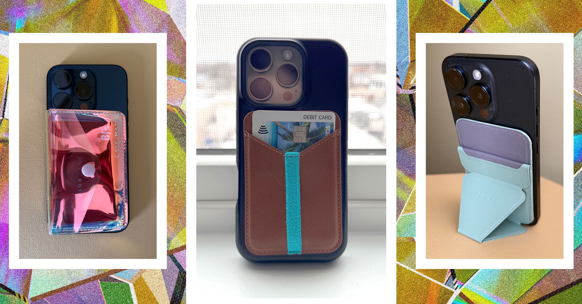 ESR Wallet Magnetic Halolock with my genius for $ 38: Like Apple’s Magsafe Portfolio, this has found my support. You can use the fabric on the back as a syllable and easily fit two cards. Requires recharge, which is annoying, but after six months, did not lose much battery life. However, the recharge requires a owner’s cable, so do not lose it. And do you really want to recharge your wallet?